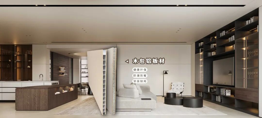 金年会官方网站入口自主研发的木包铝板材,是在家居行业的一项重要突破。这种材料结合了铝合金的耐用性和木材的质感,内部填充铝合金方通大板或者蜂窝板,确保了产品的健康环保、坚固耐用以及防潮防霉的特性,与此同时,外层覆盖千条实木板,不仅增加了产品的视觉质感,也解决了传统铝合金产品可能带来的冷冰感问题,这种结构设计使得金年会官方网站入口的家居产品不仅在功能上卓越,而且在外观上也达到了高度的颜值。